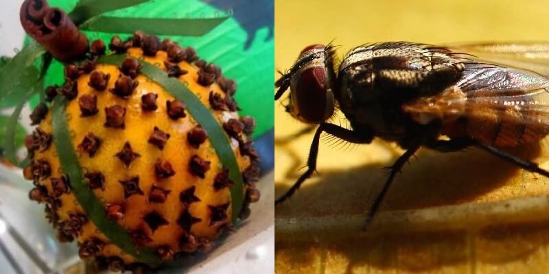Засіб відлякує комах кисло-пряним ароматом. В шкірку апельсина застроміть по парі головок гвоздики і розкладіть в місцях появи мошок.