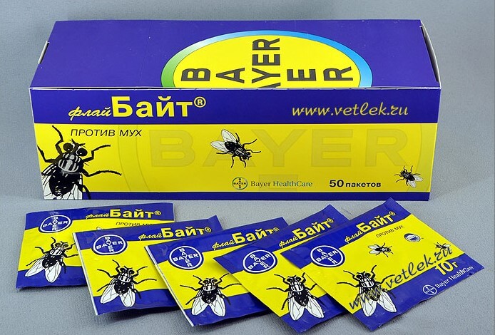 Для відлякування та знищення мух використовуйте комплексний підхід: обробляйте як тварин, так і приміщення, де вони утримуються. Для нанесення на шкіру тварин і худоби використовуйте нетоксичні відлякують препарати, наприклад, Байофлай або Флайбайт. Отруйні речовини застосовуйте в приміщеннях, де утримуються тварини. Наприклад, обробіть будку або корівник засобом Агіт.