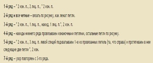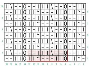 Почнемо в’язання візерунка, яке складається з дев’яти петельок і двох кромок. Вона зв’язується з чотирьох рядків.