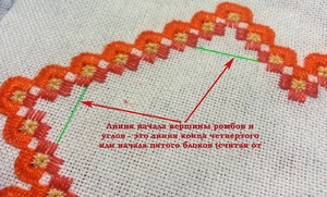 Якщо стібки минулого ряду лягають вертикально, то стібки нового ряду повинні бути вишиті по горизонталі. Перша група стібків створюється за схемою вишивання.