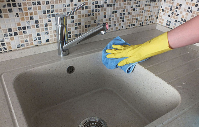 Як і будь-який інший матеріал, штучний камінь вимагає регулярного догляду. Поверхня мийки або раковини з часом забруднюється вапняним нальотом, що містяться у воді, а також покривається плямами або жирними слідами.