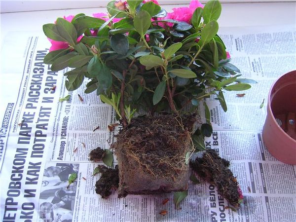 Пересаджувати квітку можна тільки після закінчення періоду адаптації. Як тільки термін акліматизації підійшов до кінця, азалію слід пересадити в новий субстрат, так як в старому грунті може бути занадто велика концентрація мінеральних речовин. Крім цього, грунт у магазині піддається частого поливу, тому може запріти і прийти в непридатність.