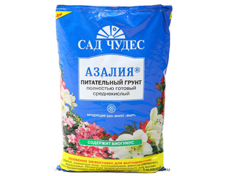 Рододендрони виростають в достатньо кислому грунті. Ви можете купити в магазині готовий грунт «для азалій», «вересковую землю» або гідропоніку, а також виготовити субстрат самостійно. Для цього змішайте 2 частини хвойної, 1 частина торф’яної землі і додайте в суміш трохи річкового піску.