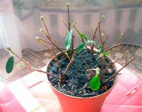 Після обрізки молоді листочки починають з’являтися на стеблах приблизно через 2-3 тижні.