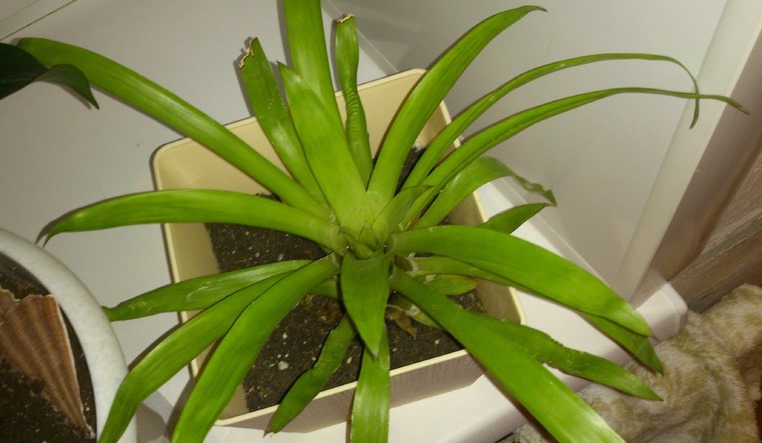 - зупинився зростання, а значить, рослині не вистачає живлення або занадто мало місця в ємності (іноді зупинка росту гузмании спостерігається безпосередньо перед цвітінням);
