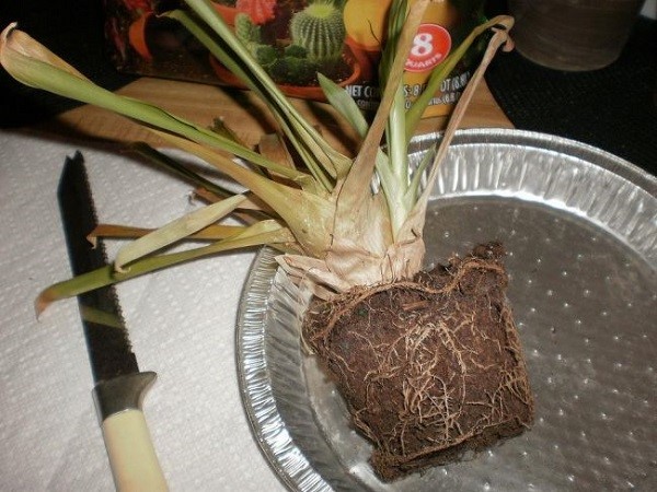 - обережно дістаньте земляний ком і відокремте дочірні паростки, акуратно розплутавши коріння;