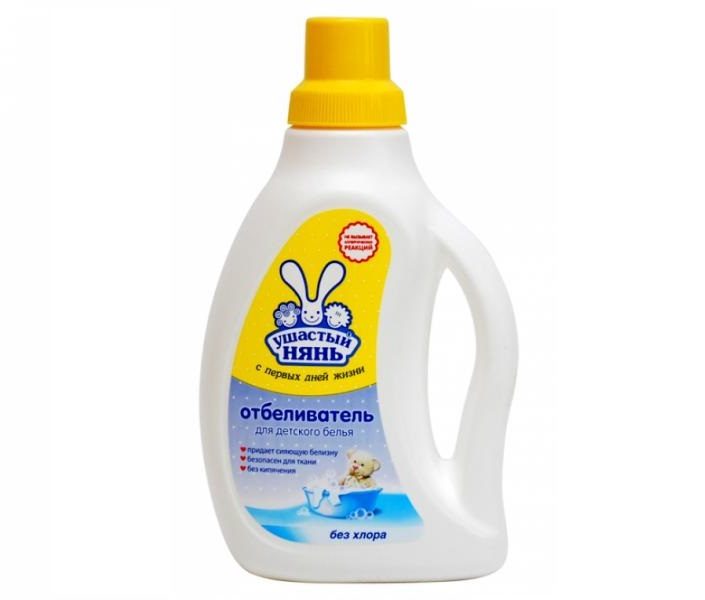 На упаковці відбілювача для дитячого одягу повинна стояти роздільна відмітка (0+). В основному кошти не лише відбілює, але і дезінфікують одяг, а також добре видаляють забруднення. Частіше всього в їх склад входить перекис водню, яка в реакції з водою виділяє активний кисень.