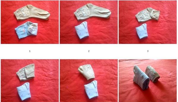 - помістити один носок іншої, і скласти втричі по довжині, загорнувши краю у напрямку до центру виробу.