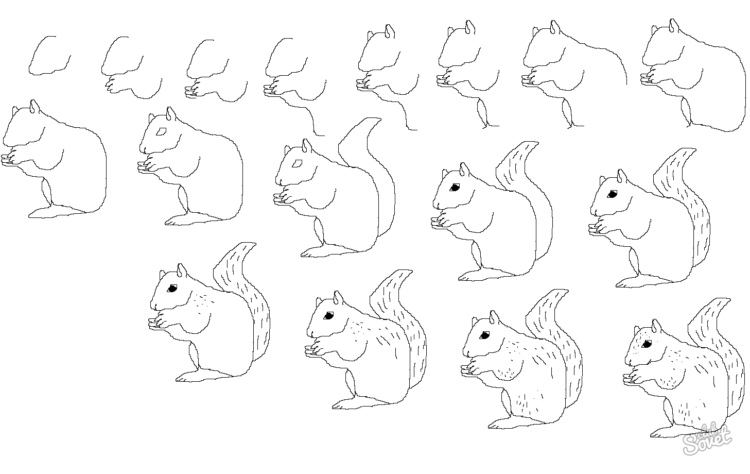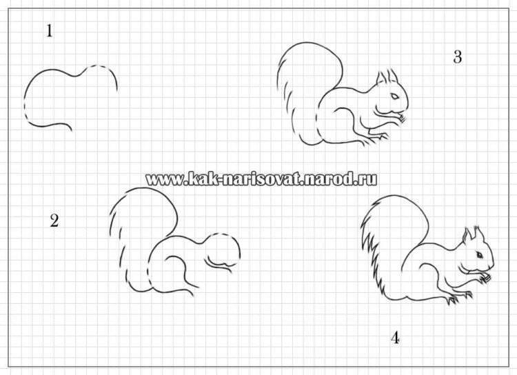 Як намалювати білку поетапно для дітей? Дуже просто. Для початківців розроблено багато ескізів з покроковими поясненнями знайдіть їх. У вас може вийти милий білченя з горіхом в лапках або одягнена по-казковому білка: малюнок для дітей повинен бути образним, з простором для фантазії.
