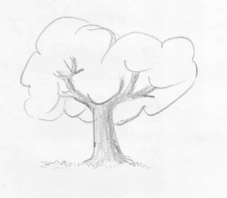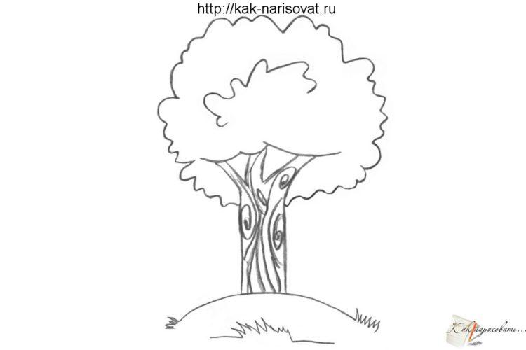Завжди слід починати малювати олівцем, а потім за бажанням можна розфарбувати малюнок кольоровими олівцями, гуашшю або аквареллю, і намальоване дерево буде виглядати як даний. Малюнок дерева олівцем завжди можна підправити, змінити. Олівець можна використовувати двох видів: твердий і м’який, який буде темніше і допоможе виділити тіні.
