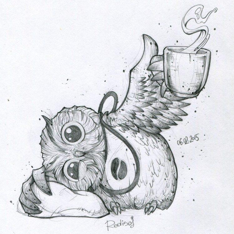 Коли ми малюємо сову або ж будь-якого з тварин, перше, що потрібно окреслити – це ескіз. Малювання ескізу передбачає легке натискання олівця під час нанесення ліній. Наприклад, якщо малювати маленького совеня, що сидить на гілці, потрібно вивести олівцем два кружечки для очей і дзьоба трикутником. Далі слід позначити тіло у вигляді овалу і додати напівкруглі крила всередині овалу.