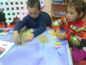 - Як приліпити на розмазаний по картону пластилін різні предмети, наприклад, насіння, намистини, крупи, макарони.
