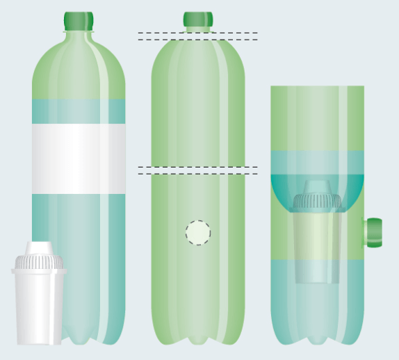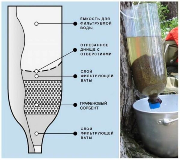 Це, мабуть, самий примітивний вид фільтра, народні умільці створюють і більш складні конструкції, які відмінно функціонують і справляються не гірше магазинних.