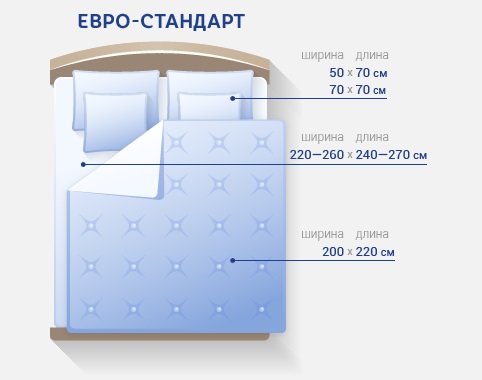 Європейські розміри спальних приладдя трохи відрізняються від російських стандартів.