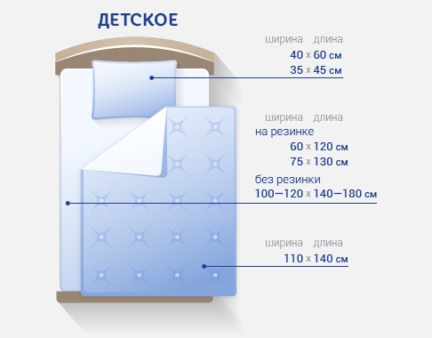 | Для немовлят | 110х150; 120х180. | 110х140; 100х150. | 45х45; 35х45. |