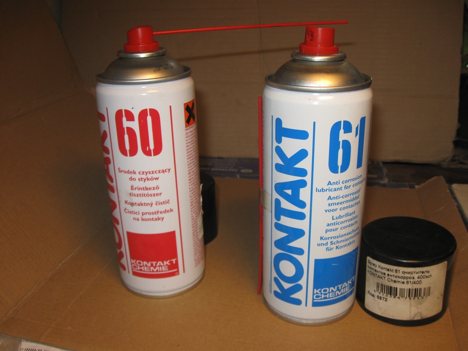 В магазинах електроніки продаються засоби для очищення окислених контактів. Крім компонентів, що розчиняють продукти корозії, такі препарати містять суміш розчинників, знімають бруд і жир. Рідина для очистки контактів швидко випаровується і видаляє будь-які забруднення.