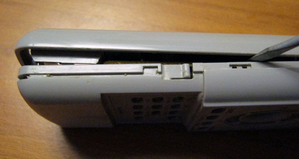 | Знайдіть сполучні болти на корпусі і акуратно розкрутіть їх хрестоподібної викруткою або кінчиком ножа. | Знайдіть шви з’єднання і проведіть по їх периметру пластиковою карткою. Під час процедури будуть чутні клацання – це відкриваються засувки. Коли всі засувки будуть відкриті, панель легко зніметься. |