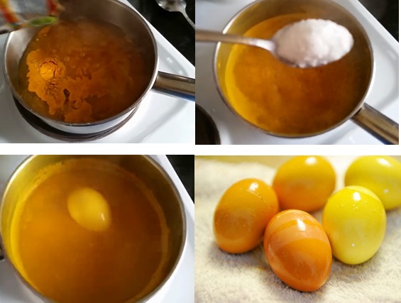 - Пофарбувати яйця в куркумі, як описано вище.
