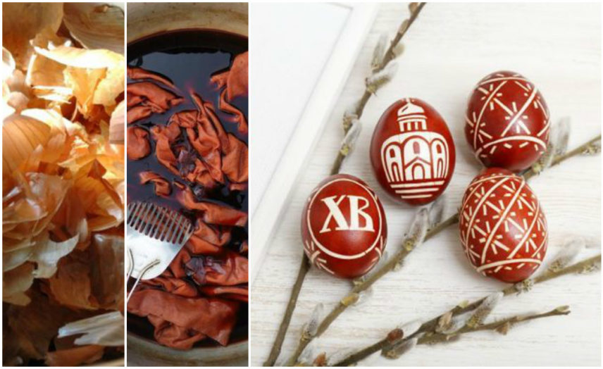 Найбільш поширений варіант фарбування яєць – це використання цибулі. Збирати лушпиння краще заздалегідь, оскільки її потрібно багато, і тоді не доведеться придумувати, які страви приготувати, щоб використовувати весь почищену цибулину.