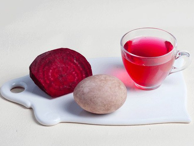 - Очистити, натерти буряк і трохи залити водою. Потім додати 1 ч. л. оцту і на 15 хвилин поставити на вогонь. Покласти в гарячий розчин варені яйця на 1 годину.