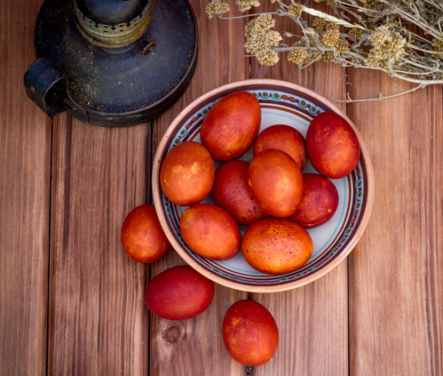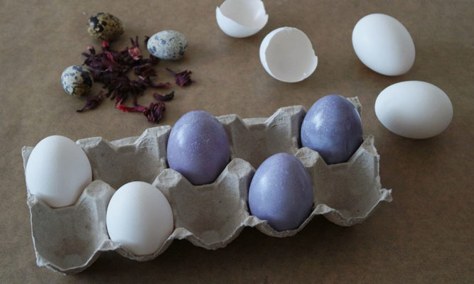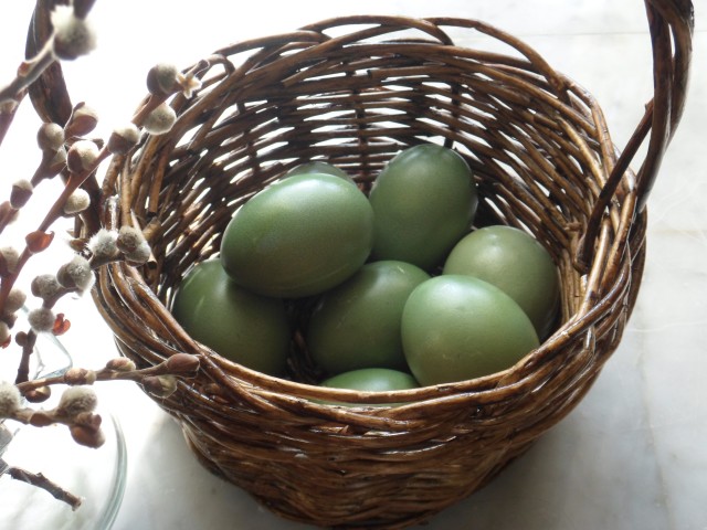 Хороший трав’яний відтінок допоможе додати відвар кропиви, а домогтися малинового кольору можна з допомогою журавлини. Тільки в натуральних барвниках яйця треба тримати довше, ніж у покупних, оскільки речовини не можуть швидко проникнути в пори шкаралупи і пофарбувати її.