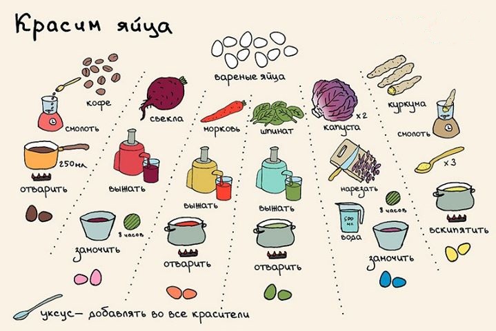 Незважаючи на те що на покупних барвниках пишуть, що вони абсолютно нешкідливі для організму, хочеться це знати напевно. Тому багато сімей, особливо у яких є маленькі діти, використовують для фарбування натуральні продукти і народні рецепти. Тим більше, список таких продуктів величезний і навіть якщо вдома немає нічого з овочів, то прекрасно підійде чай або навіть кави.
