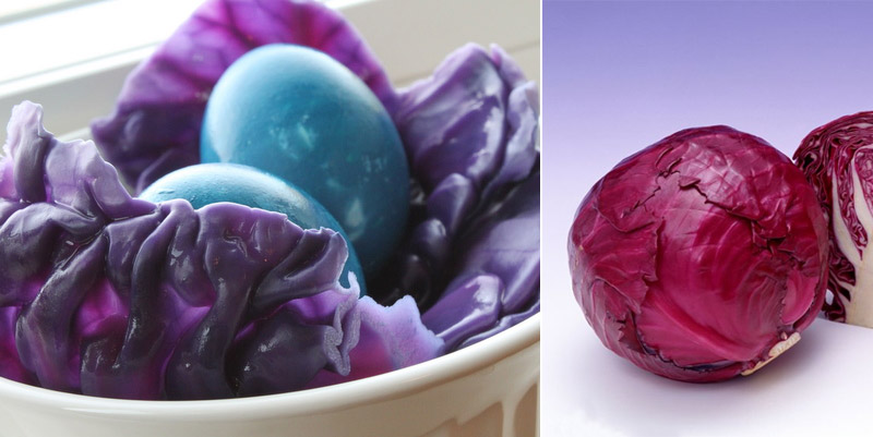 З допомогою червонокачанної капусти забарвлюються вже зварені яйця. Колір шкаралупи варіюється від ніжно-блакитного до темно-синього залежно від концентрації настою.