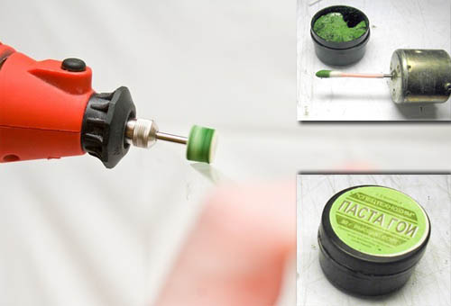 Використовувати тільки тонкий вид пасти. Також знадобиться повсть чи фетр, яким і проводиться полірування.