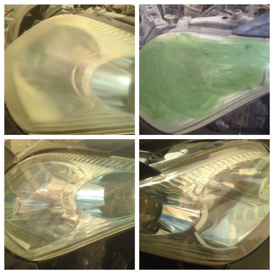 Тут теж немає особливих відмінностей. Головне – провести підготовку фар до процедури. Для цього їх необхідно попередньо вимити. Далі на полірувальний круг наноситься мастило WD-40 і паста ГОІ. Полірувати потрібно без надмірного застосування сили. Достатньо двох таких обробок, і фари матимуть належний вигляд. Далі фари вручну обробляють поліроллю.