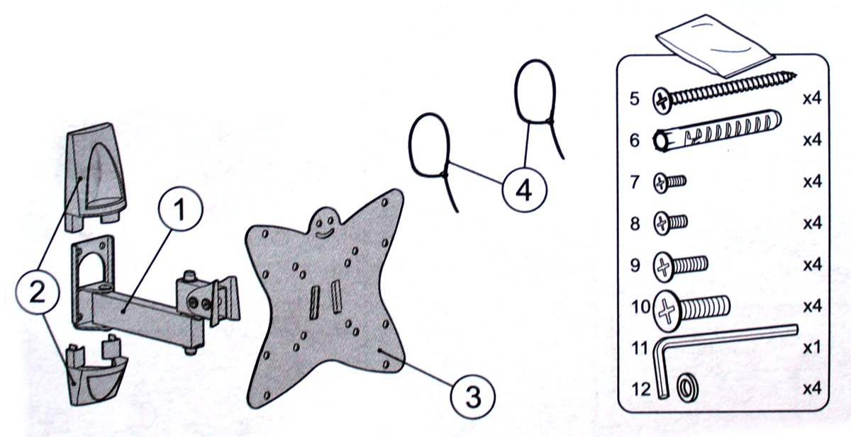 | Розмір діагоналі | Вага | Розмір кріплення | Болти | Модель кронштейна |