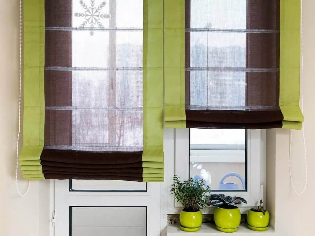 Це єдине полотно, яке поділяється на кілька ділянок. Кожен з них має велику кількість пишних складок тканини. І цей варіант оснащується підйомним механізмом.
