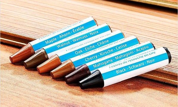 - Меблевий олівець. Існують також спеціальні олівці. З їх допомогою можна легко зафарбувати подряпані місця. Якщо ви правильно підберете відтінок, ушкоджену ділянку буде повністю замаскований.