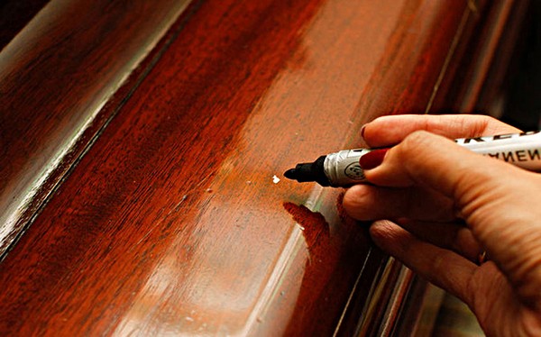 - Маркер. «Заховати» дефект допоможе звичайний маркер. Підбираємо потрібний колір і акуратно профарбовують подряпину. Це самий бюджетний варіант маскування, і, мабуть, найпростіший.