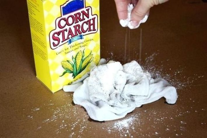 Позбутися від плям різного походження допоможе кукурудзяний крохмаль.