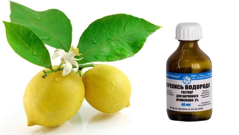 - Розведіть 1 ч. ложку лимонного соку, 2 ч. ложки перекису. Отриманий розчин розподіліть на проблемній ділянці і втирайте пальцями. Після очищення видаліть залишки суміші.