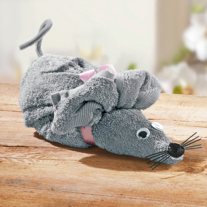 З рушників можна створювати милі фігурки тварин. Їх можна подарувати дітям або, наприклад, на Новий рік, як символ наступного року. Також такі вироби відмінно прикрасять будь-яку ванну кімнату.