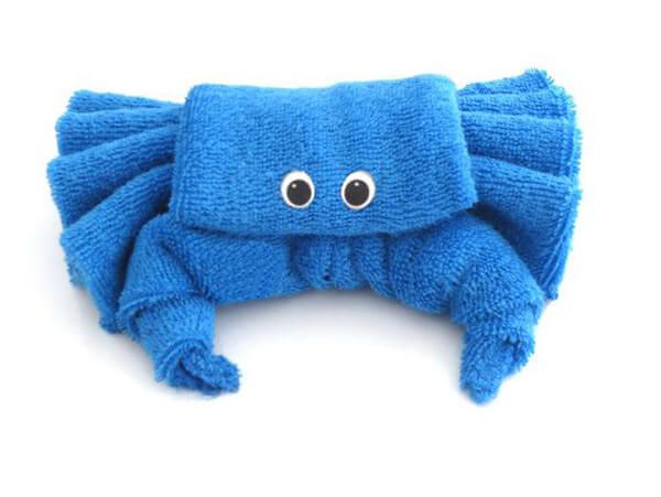 Для створення фігурки краба вам потрібно одне прямокутне рушник, а також гудзики для очей.