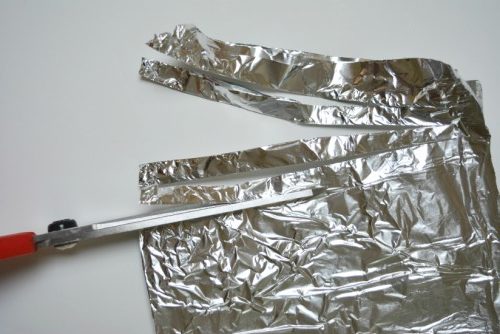 Візьміть аркуш фольги і складіть його в 6-8 шарів. Повинен вийде досить щільний пласт. Відрізайте фольгу за невеликий смужці, задіявши всю поверхню лез. Чим тупіший ножі, тим більше надрізів необхідно зробити.