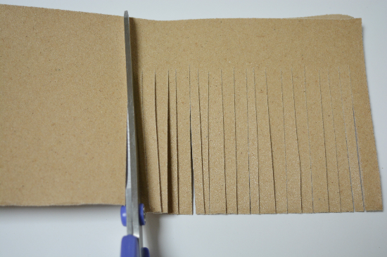 Як і інші підручні матеріали, наждачним папером точать ножиці, за допомогою її різання. Заздалегідь складіть папір навпіл шорсткою стороною назовні і поріжте на невеликі смужки.