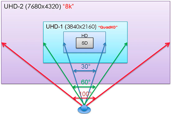 Крім розміру і дозволу картинки, на якість перегляду впливає кут огляду екрана, який визначається типом встановленої в прилад матриці. Чим більше реальний кут огляду, тим краще глядач занурюється в зображення. Екран при цьому буде чітко видно навіть збоку.