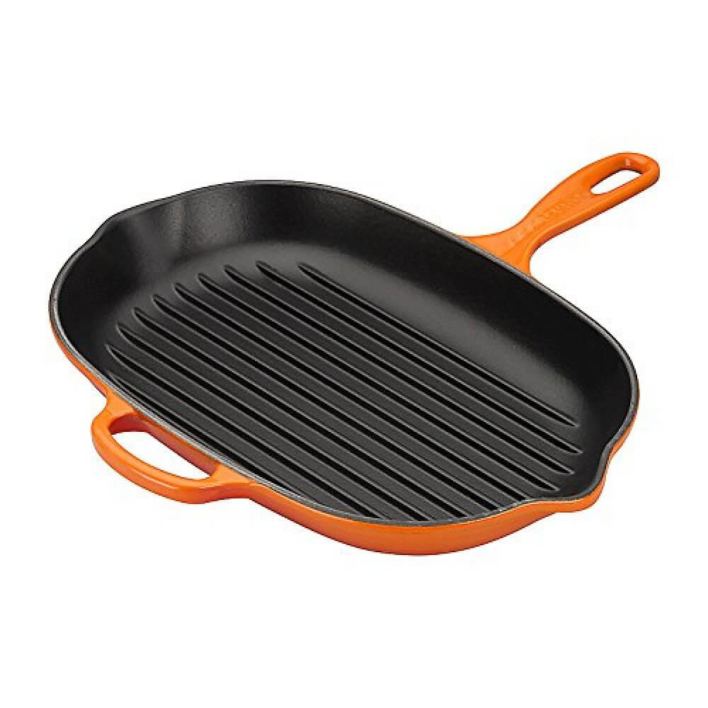 - квадратна сковорода гриль вважається оптимальним варіантом, тому що на ній поміщається більше продуктів, а також її зручно використовувати і на плиті, і в духовці;