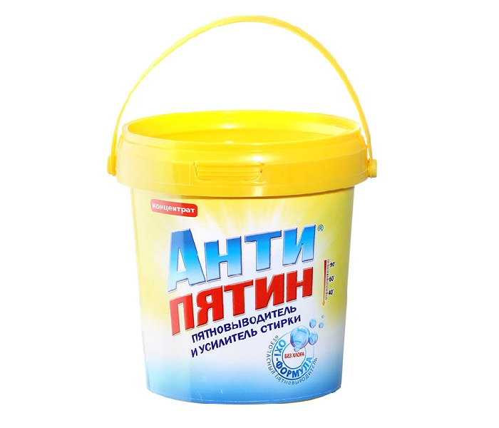 - Антипятин. Засіб з активним киснем. Розведіть 10 г речовини в 0,5 літра води і змочіть пляма крові. Через 15 хвилин змийте піну, яка утворилася водою і просушіть поверхню.