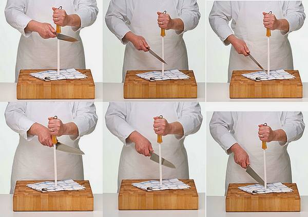 Як точити ножі мусатов? Пам’ятайте, що хороший ефект від застосування мусата досягається, тільки якщо їм правильно користуватися. Дотримуйтесь таку послідовність дій: