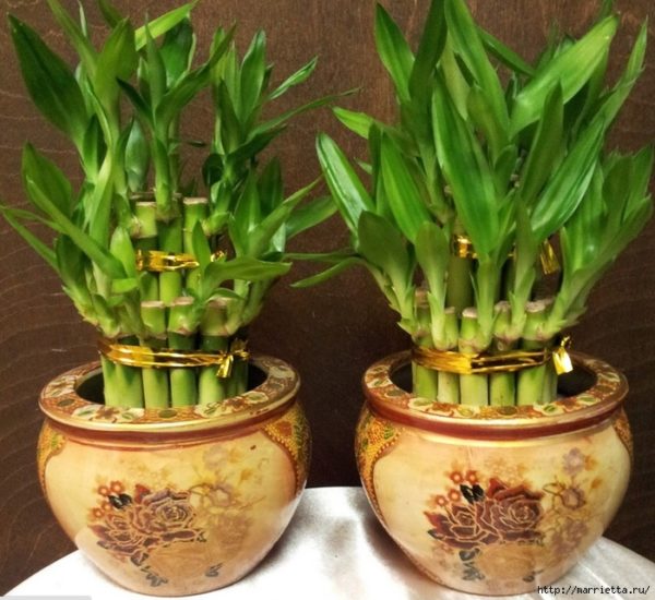 Кімнатний бамбук спеціально виведений для вирощування в домашніх умовах. З філософії феншуй бамбук залучає удачу і щастя в дім, а господареві дарує довголіття. Тому його називають щасливим бамбуком.