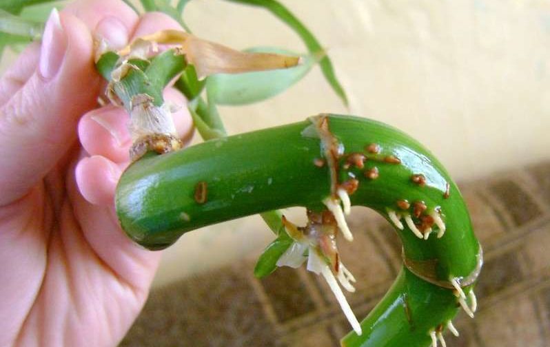 Цей спосіб розмноження вкрай рідкісний. Коли доросла рослина пересаджують, в цей момент відокремлюють великі пагони і відразу висаджують в грунт в окрему ємність. Поки втеча не вкорениться його потрібно рясно поливати.