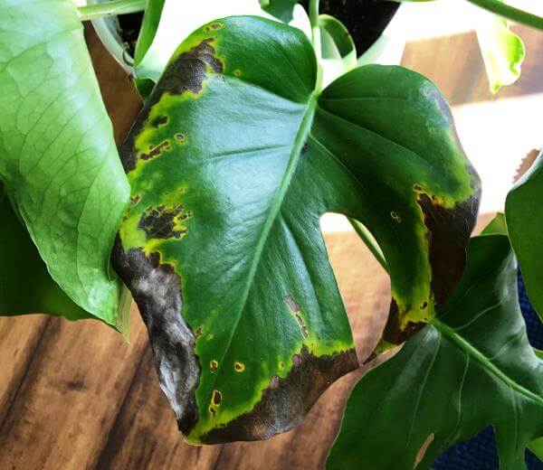 Листові пластини починають чорніти при надмірному поливі, в результаті якого утворюється застій води в горщику. Коріння, а потім і вся рослина вражаються гнилизною. Щоб зупинити процес, потрібні термінова заміна грунту, дезінфекція ємності і обрізування пошкоджених коренів. Квітка після пересадки необхідно полити розчином фітоспорину. Їм же обробляють постраждалі листові пластини.