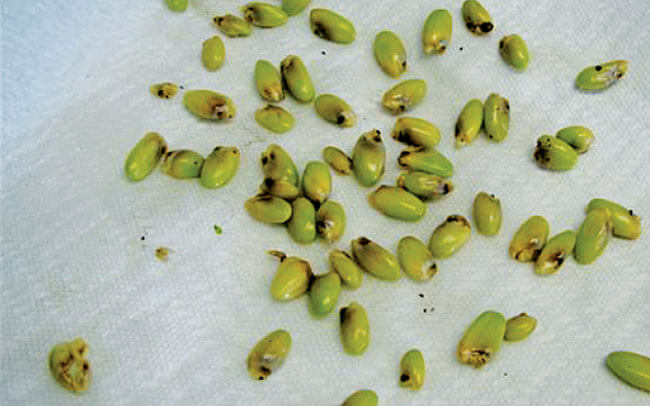 Цей спосіб використовується рідко, тому що є найменш результативним. Щоб дочекатися сходів, застосовують тільки свіжі насіння рослини. Їх поміщають в поліетиленовий пакет, наповнений вологим мохом, і тримають на яскравому розсіяному світлі при температурі 23-25 градусів. Появи перших паростків слід очікувати приблизно через півтора місяця. Пакет з насінням необхідно регулярно провітрювати і зволожувати.