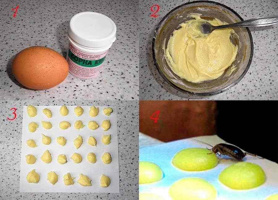 Змішайте інгредієнти і зліпити з отриманої маси невеликі кульки. Розкладіть отруйні ласощі в місцях проживання мурах і чекайте результат. Зазвичай з допомогою кульок з жовтка вся колонія мурашок гине протягом 2-4 тижнів.