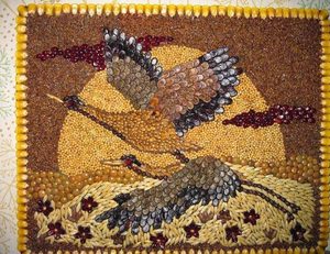Майстрам старшого віку буде під силу самостійно виготовити аплікацію на тему осені, створити картини з видом природи, осінні візерунки. В роботі варто поєднувати різні види насіння, з’єднувати кольорові гами та фактури. Крупу допоміжно можна пофарбувати різними способами – після того, як вже приклеїли її на картинку, за допомогою фарби та пензля. Або попередньо змішуючи гуаш і крупу в тарілочці. Після сушіння, кашку треба перетерти руками, вона знову буде розсипчастою.