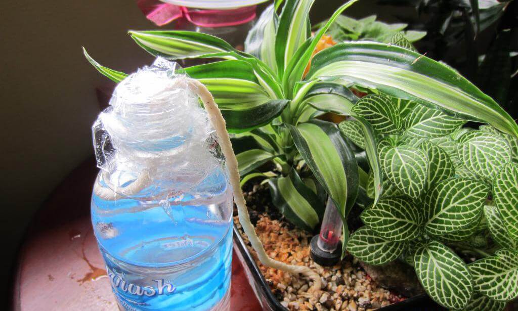 Подібним способом можна забезпечити полив для рослини терміном до двох тижнів.